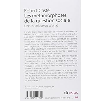 Robert Castel revisite la question sociale en contre-pied des représentations sociales véhiculées. Alors que le discours médiatique présente les personnes en marge de l'emploi comme des "exclus", l'exclusion apparaissant alors comme un état, Castel explique que ce phénomène est le résultat d'un processus de désaffiliation dont la cause principale est la déstabilisation et la vulnérabilisation d'une masse croissante de salariés. Sa grille d'analyse de l'espace social combine en effet deux dimensions importantes pour chaque individu: la place dans la division du travail et la participation aux réseaux de sociabilité.Pour Etudiants, enseignants, citoyens engagés...